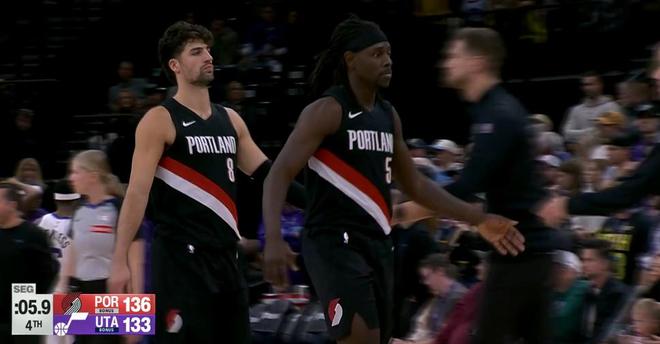 第四位是第二節(jié)輪轉階段充當五小陣容奇兵的里斯,里斯的爆發(fā)讓人意想不到,原本開拓者只是讓他當飲水機替補,出場順位在克林根楊瀚森之后,沒想到這一場面對內(nèi)線高人林立的爵士,里斯迎來了大爆發(fā)。